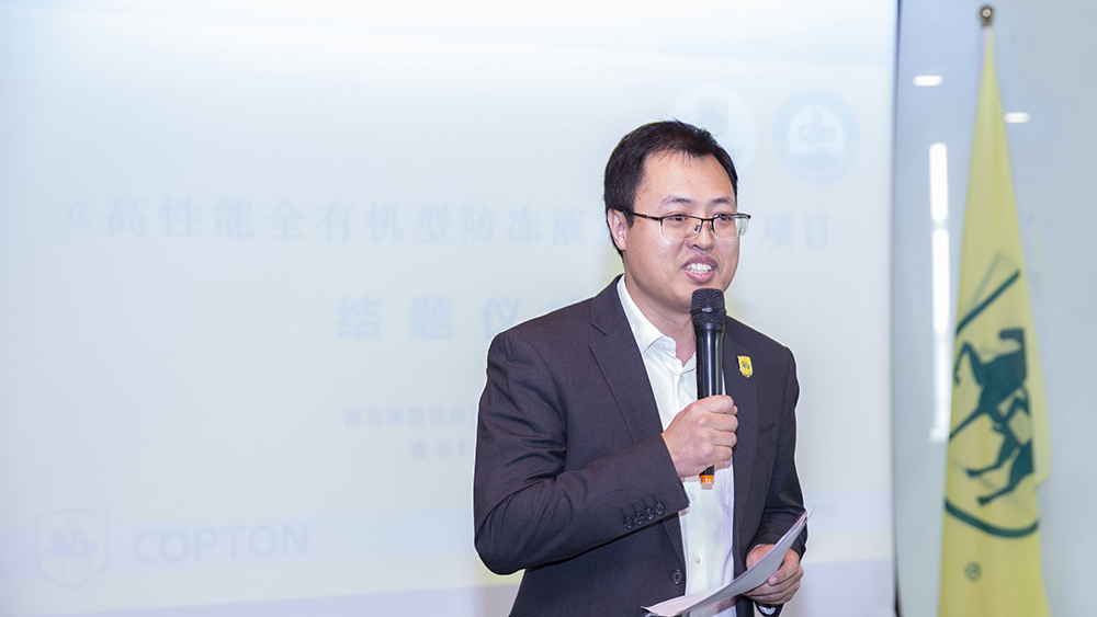 青岛康普顿科技股份有限公司技术总监蒋威先生针对于该项目验证验收工作进行了汇报,经市售产品与研发成果的对比分析,研发成果在金属腐蚀保护、抗泡沫性能等方面优于市售常见产品,同时,权威第三方检测机构SGS的检验结果表明,该项目研发成果满足并超越GB 29743《机动车发动机冷却液》标准的要求。