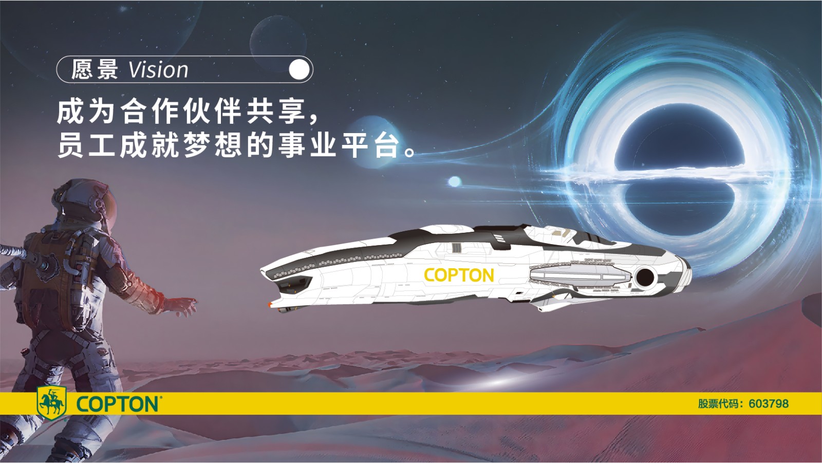 愿景: 成为合作伙伴共享,员⼯成就梦想的事业平台