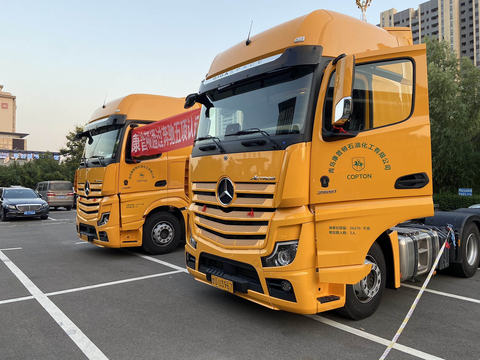 而在这场答谢会中,最令人震撼、难以忘记的是公司刚刚购买的两辆奔驰大型牵引车现场助威,这也是第一次正式助力康普顿品牌宣传。在不久前,康普顿公司再获戴姆勒奔驰的五项认证证书,可以说,康普顿与戴姆勒奔驰有着千丝万缕的联系。两辆牵引车全车以康普顿温暖的黄色为基调,不仅与寓意着丰收的秋季遥相呼应,同时温暖的黄色也展现了康普顿充满韧性的、坚定有力的走过疫情的灰暗一路向前。这两辆奔驰牵引车主要功能是用于康普顿自有商用车全系列产品的路试,作为全球最昂贵的CK-4柴机油路试车辆,康普顿将用其验证自身CK-4产品的卓越性能与优异品质。